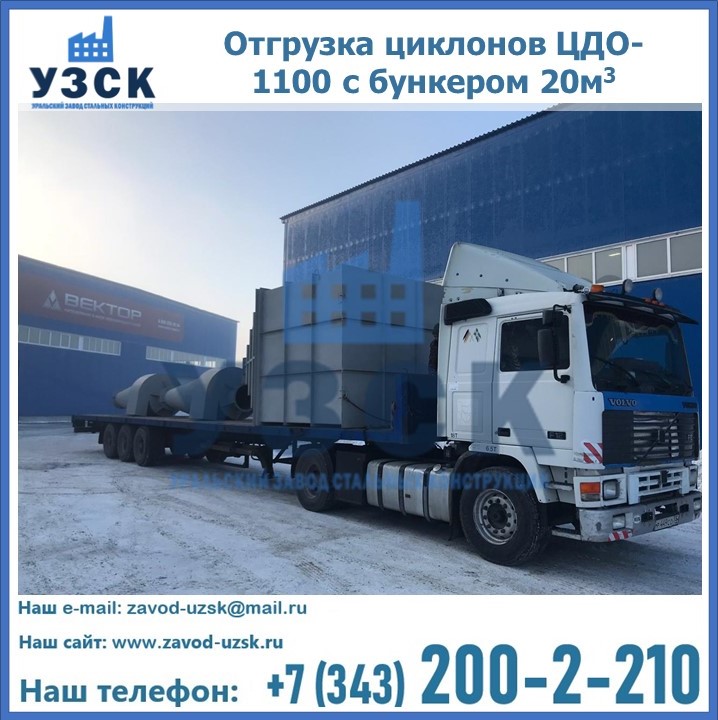 Циклоны ЦДО-1100 с бункером на 20 кубов были отгружены в декабре 2018 года в г. Новосибирск Тольятти.