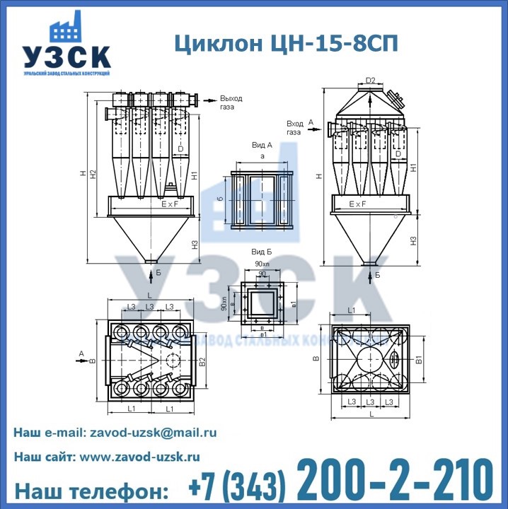 Завод «УЗСК» в Тольятти предлагает большой выбор циклонов ЦН-15-500×8СП и прочих устройств, полностью укомплектованных и готовых к эксплуатации. Мы гарантируем соответствие оборудования всем требованиям ГОСТ и ТУ, износостойкость и высокую производительность предлагаемого оборудования. Уральский Завод Стальных Конструкций изготавливает и продает надежное, эффективное и производительное оборудование, имеющее длительную гарантию и большой эксплуатационный ресурс. Если требуется изготовить циклон нестандартных размеров, то такой вариант выполнения заказа тоже предусмотрен, так как предприятие имеет собственные производственные площади и надежных поставщиков. На все поставляемое или производимое оборудование имеются чертежи и прочая техническая документация. Заказать и купить циклоны или прочее оборудование высокого качества и по доступной цене можно через наш сайт или по указанному в разделе