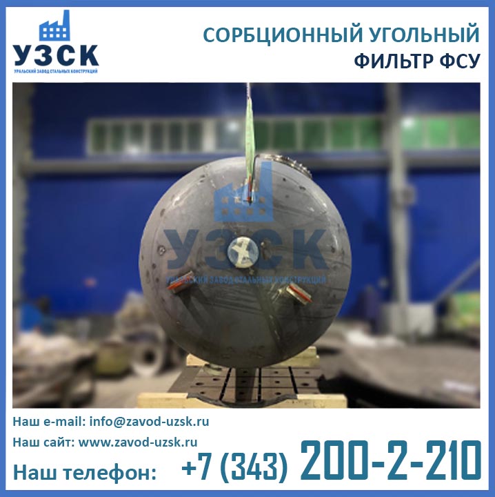Качественную работу отопительных и промышленных котельных, линий по очистке конденсата и природных вод, электростанций обеспечивает фильтр сорбционный угольный типа ФСУ — вертикальный сосуд с одной камерой цилиндрической формы. Основное назначение оборудования состоит в глубокой очистке возвращаемого с производства конденсата от запахов, органических загрязнений и привкусов. Использование ФСУ в системах водоподготовки гарантирует очищение субстанции от масел, органических примесей, остатков нефтепродуктов до нормального значения — 0.52-1.0 мг/л. Купить в Тольятти угольные фильтры предлагает наш Уральский завод стальных конструкций. Мы выполняем производство ФСУ под нужды предприятия, возможно изготовление сорбционных фильтров ФСУ из нержавеющей стали включая корпус и внутренние устройства.