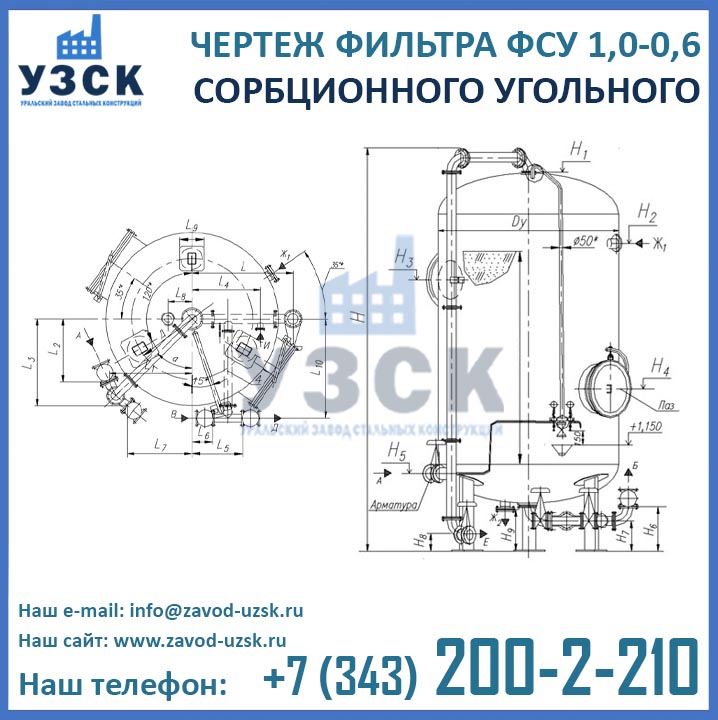 Наш завод (Уральский завод стальных конструкций) является производителем угольных фильтров, сам осуществляет изготовление и реализацию выпускаемой продукции. Приобретая фильтры ФСУ-1.0-0.6 в Тольятти от производителя, Вы приобретаете оборудование без наценок всевозможных посредников, а также значительно экономите свое время. Фильтры ФСУ1.0-0.6 завода УЗСК – это гарантия качества, кратчайшие сроки изготовления и цена, которая Вам понравится.