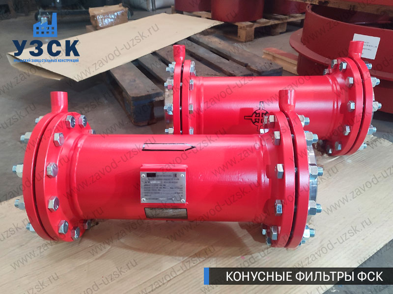 Уральский Завод Стальных Конструкций занимается производством фильтров ФСК различных конфигураций, что позволяет применять их в различных средах. Фильтры имеют разные диаметры, которые соответствуют сечениям всасывающих трубопроводов, на которых будут монтироваться. Конструкция выполняется из высококачественной стали, на фильтры могут быть установлены сетки с различными параметрами ячеек, чтобы обеспечить максимально эффективную очистку жидкой и газообразной среды от твердых частиц.